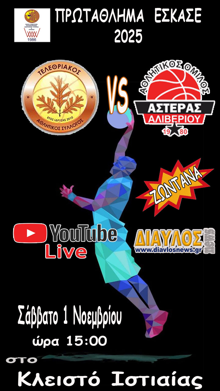 Το Σάββατο 1 Νοεμβρίου 2025 και ώρα 15:00 απο το Κλειστό Ιστιαίας