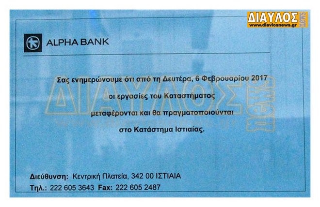 Κλείνει η ALPHA Bank στα Λουτρά Αιδηψού
