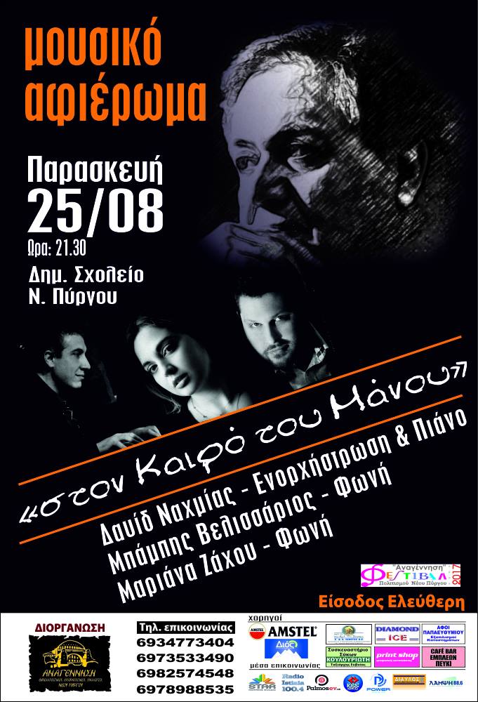 Μια πραγματικά υπέροχη βραδιά ζήσαμε όσοι βρεθήκαμε στο σχολείο Νέου Πύργου την Παρασκευή 25 Αυγούστου, στην τελευταία μουσική εκδήλωση για το Φεστιβάλ Πολιτισμού ΑΝΑΓΕΝΝΗΣΗ 2017