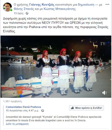 Διαφήμιση της ρουμάνικης τηλεόρασης για τον τόπο μας και μάλιστα χωρίς κόστος δικό μας, παρά μόνο τη συνεργασία των Πολιτιστικών Συλλόγων του Νέου Πύργου και των Ωρεών