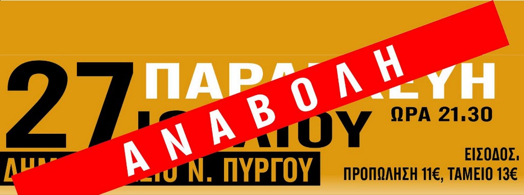 Aπο το ΔΣ του Συλλόγου ΑΝΑΓΕΝΝΗΣΗ Νέου Πύργου λάβαμε ανακοίνωση σχετικά με την αναβολή της συναυλίας του Νίκου Πορτοκάλογλου και μετάθεσή της για τις 24 ΑΥγούστου 2018