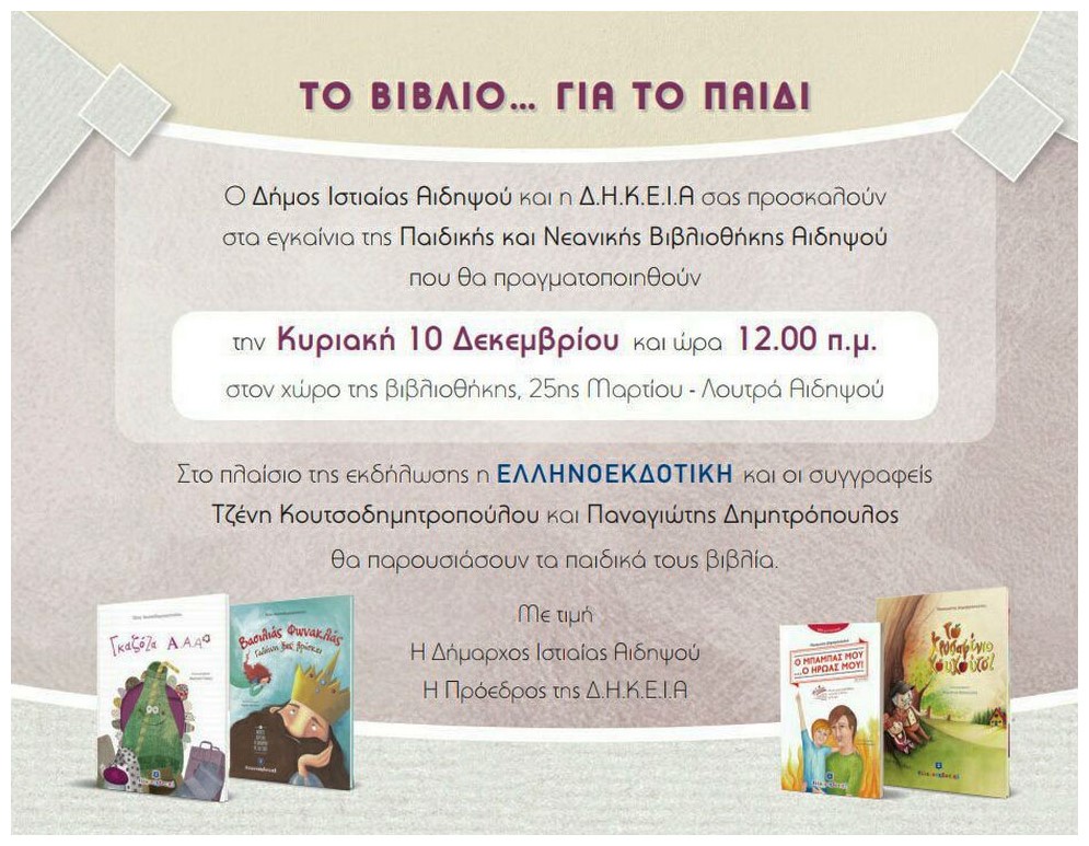 Την ερχόμενη Κυριακή 10 Δεκεμβρίου 2017 θα πραγματοποιηθούν τα εγκαίνια της Βιβλιοθήκης Αιδηψού