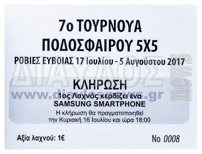 Ξεκίνησε η κυκλοφορία των λαχνών του τουρνουά ποδοσφαίρου 5Χ5 των Ροβιών.