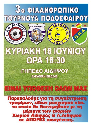 Την Κυριακή Φιλανθρωπικό τουρνουά στην Αιδηψό