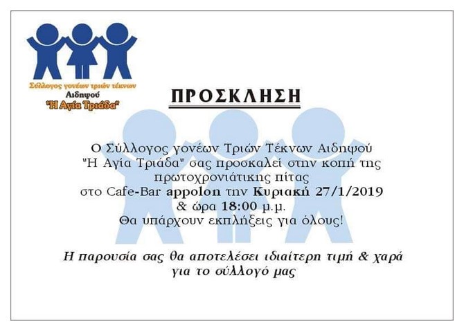 Το Cafe bar APOLLON επέλεξε ο Σύλλογος Τριών Τέκνων "Η Αγία Τριάδα" για την κοπή της πρωτοχρονιάτικης πίτας