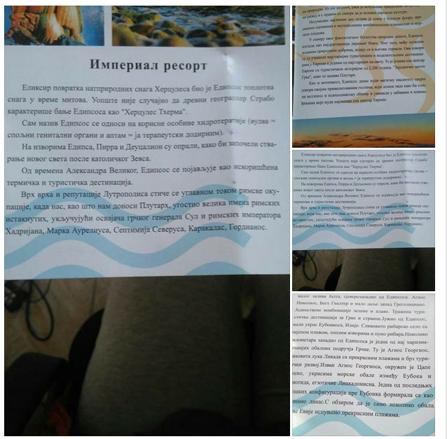 Το φυλλάδιο του Συλλόγου Ξενοδόχων Αιδηψού που μοιράστηκε στην έκθεση της Σερβίας και το οποίο είχε λάθη που δυσφημούν την Λουτρόπολη της Αιδηψού αλλά και την περιοχή μας γενικότερα