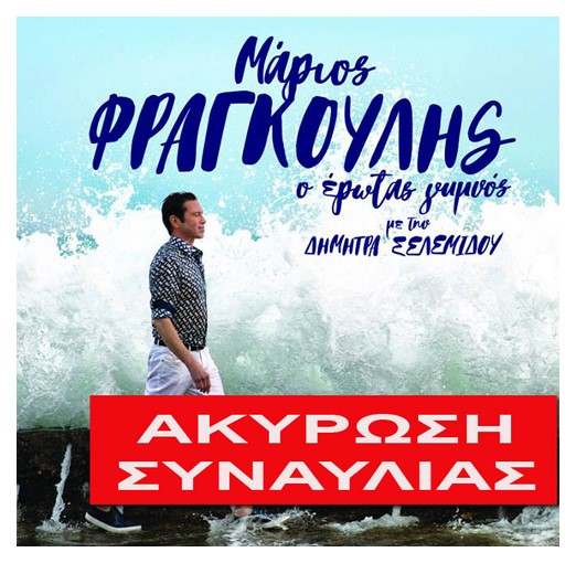 Κάτω από το βάρος της ανείπωτης τραγωδίας που δυστυχώς είναι σε εξέλιξη, ΑΚΥΡΩΝΕΤΑΙ η συναυλία του Μάριου Φραγκούλη, την 1η Αυγούστου.