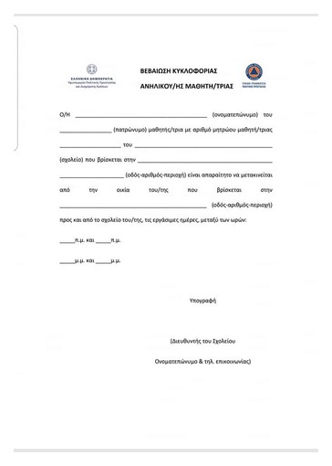 Η μετάβαση ανήλικων τέκνων από και προς τις #σχολικές_μονάδες επιτρέπεται από έναν γονέα/κηδεμόνα με την αποστολή SMS – Επιλογή 4 και με πιστοποιητικό-βεβαίωση της Διεύθυνσης του σχολείου, στην οποία αναγράφονται η διεύθυνση της σχολικής μονάδας και η διεύθυνση κατοικίας του μαθητή-τριας.