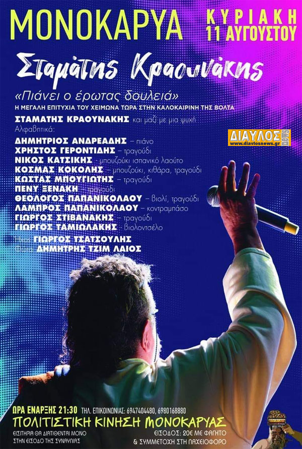 Read more: Η Πολιτιστική Κίνηση Μονοκαρυάς: Ο Σταμάτης Κραουνάκης έρχεται στη βόρεια Εύβοια!