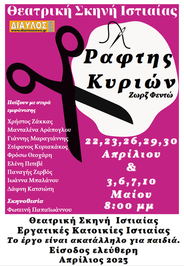 Read more: Η Θεατρική Σκηνή Ιστιαίας παρουσιάζει το έργο του του Ζωρς Φεντώ, Ράφτης Κυριών.