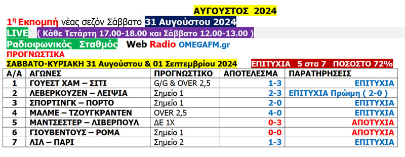 Λεπτομέρειες Σεπ.02 Δημιουργήθηκε : 02 Σεπτεμβρίου 2024 Εμφανίσεις: 1172 ΠΡΟΟΡΙΣΜΟΣ ΤΑΜΕΙΟ: ΣΤΑΤΙΣΤΙΚΑ ΣΤΟΙΧΕΙΑ 1ης ΕΚΠΟΜΠΗΣ 31 Αυγούστου 2024 ΕΠΙΤΥΧΙΑ 5 ΣΤΑ 7 Ποσοστό 72 % Προηγούμενο Επόμενο