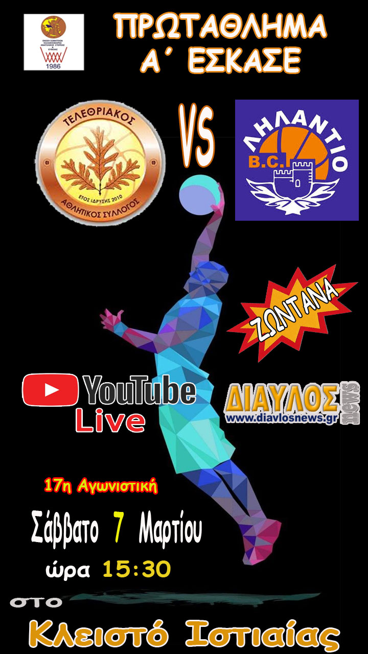 Το Σάββατο 7 Μαρτίου 2026 και ώρα 15:30 απο το Κλειστό Ιστιαίας